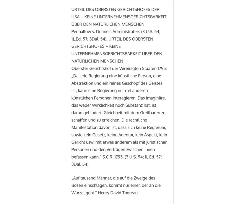 Nachweis als lebendes Wesen, mit dem unauslöschlichen Verfügungsrecht über die natürliche Person, die eigene Rechte in sich trägt. Diese Person ist nur in Verbindung mit dem höheren Überpositiven Recht verwendbar, wobei die aktuelle Rechtsprechung Schwierigkeiten mit den vorliegenden Regeln, den entsprechenden Urteilen des Bundesverfassungsgerichts und den internationalen Verträgen hat. Die Übernahme von Eigentumsrechten ist möglich.