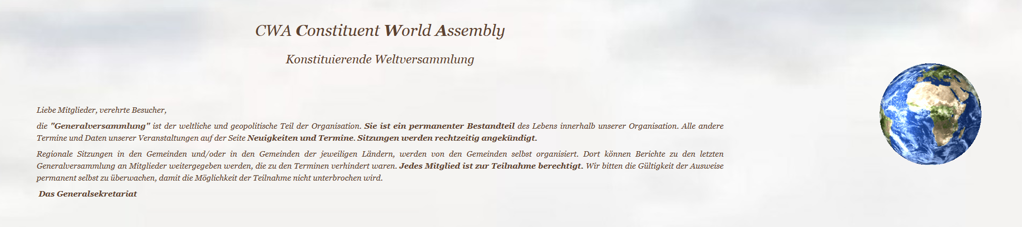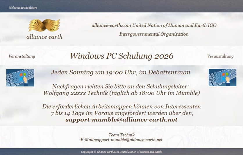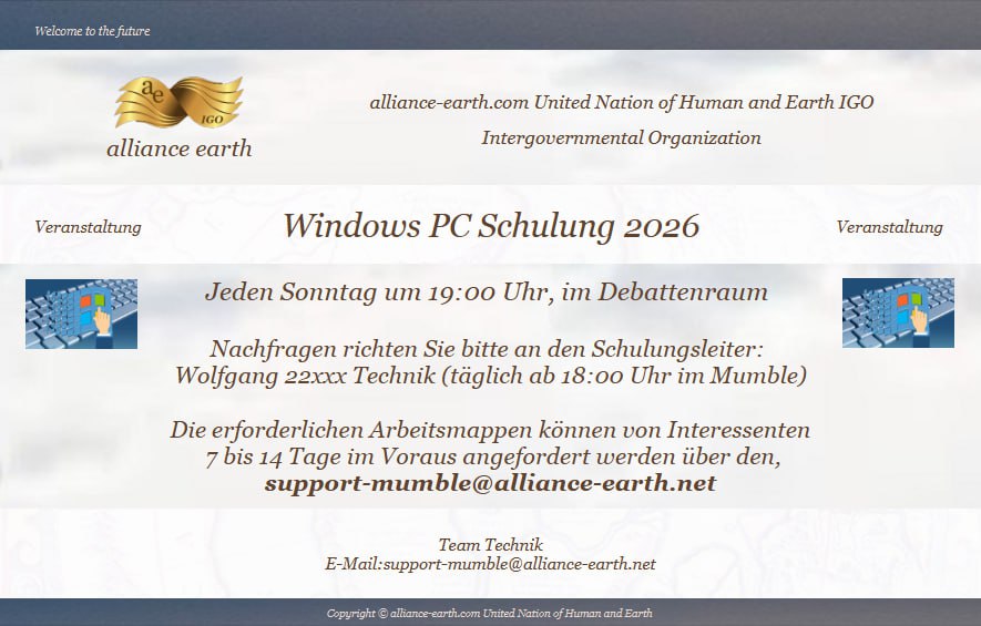 Unsere Organisation bereitet sich weiter auf den Übergang in die neu Zeit vor und wird bei diesem Wechsel rechtzeitig für die Rechte der Menschen und deren rechtliche Stellung streiten. Wir wollen gemeinsam die Fehler der Vergangenheit ausschließen, durch die Administrationen die Position der natürlichen Personen für sich beansprucht haben. Nach 1990 ist es die nächste und wahrscheinlich letzte Möglichkeit, diesen Rechten Gehör und Geltung zu verschaffen. Dies gilt nicht nur für Deutschland, sondern für alle Nationen und Völker dieser Welt. Wenn wir Erfolg haben wollen, geht es nur gemeinsam.