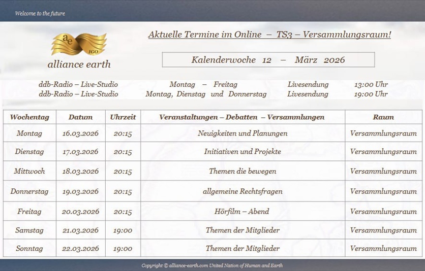 Wir freuen uns über eine rege Teilnahme, wobei im ddbagenturChat auf Telegram auch Menschen teilnehmen können, die noch keine Mitglieder bei alliance earth sind.
